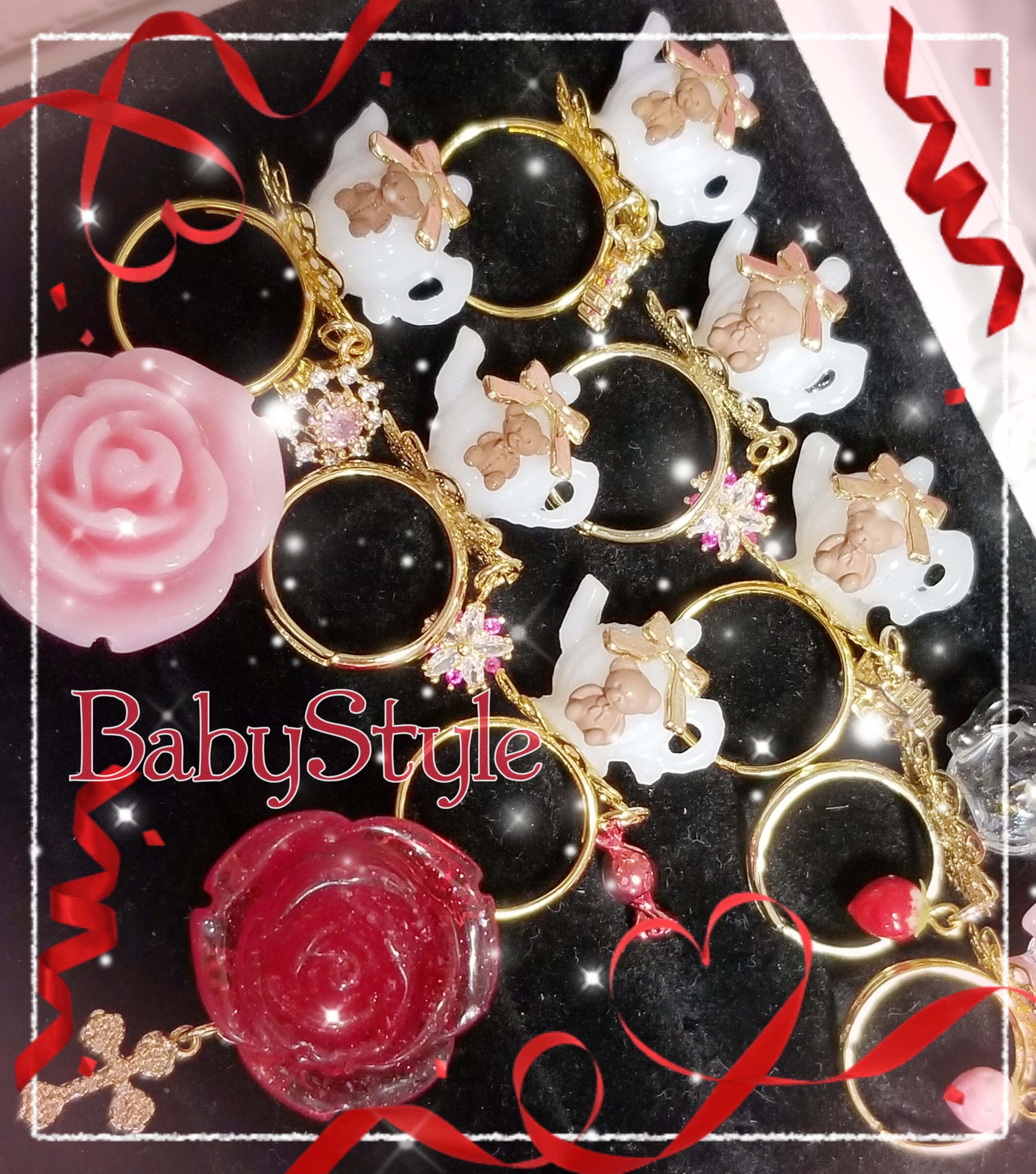 お写真左下のピンクのひと粒ストーン+複数ラインストーンタイプです
